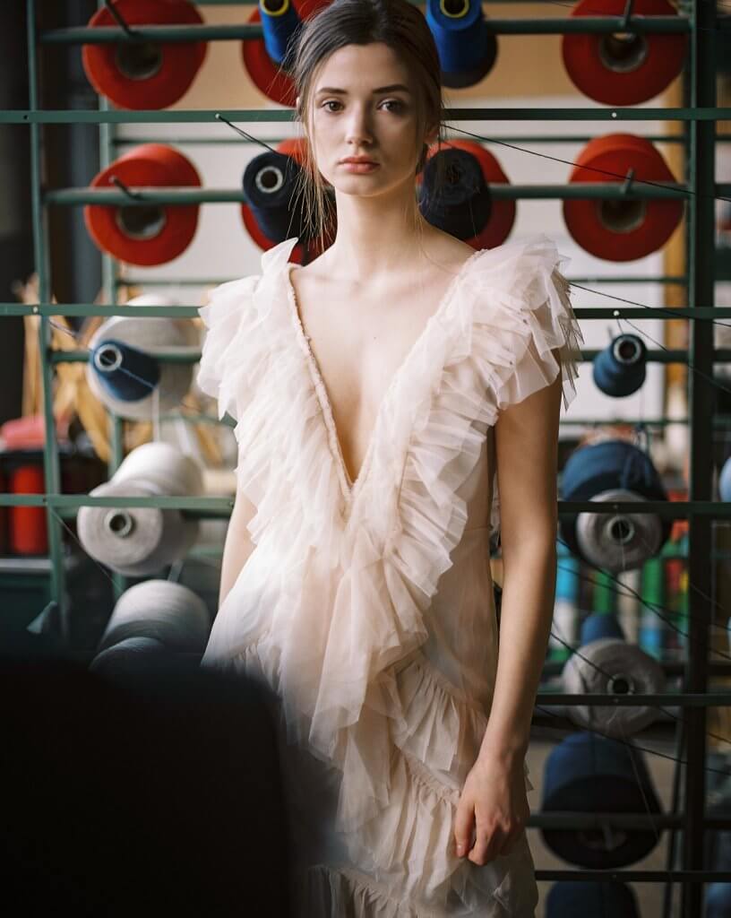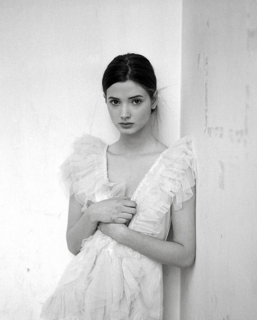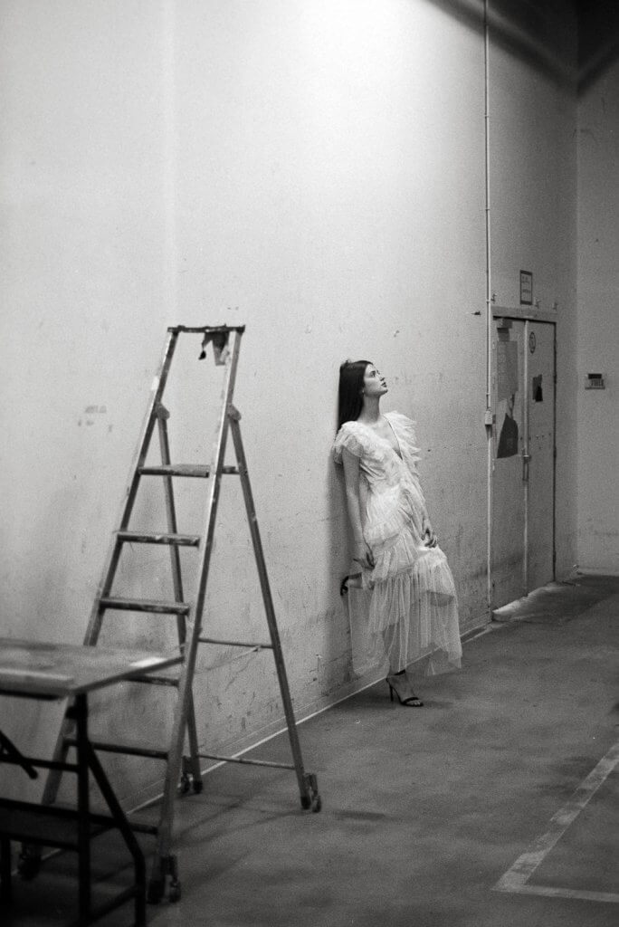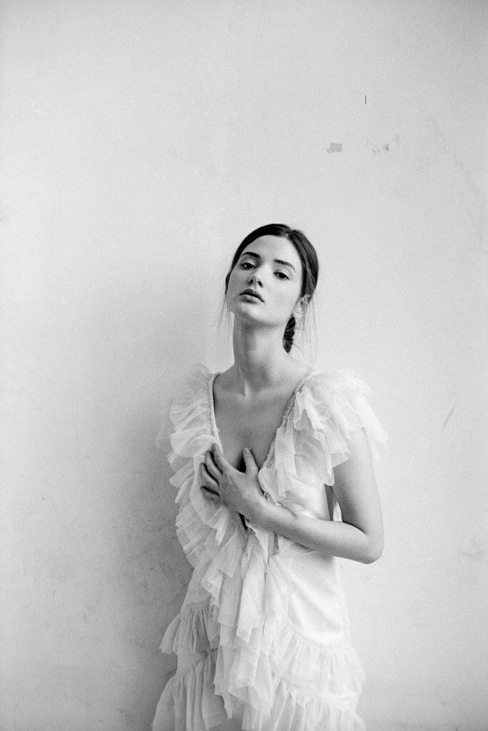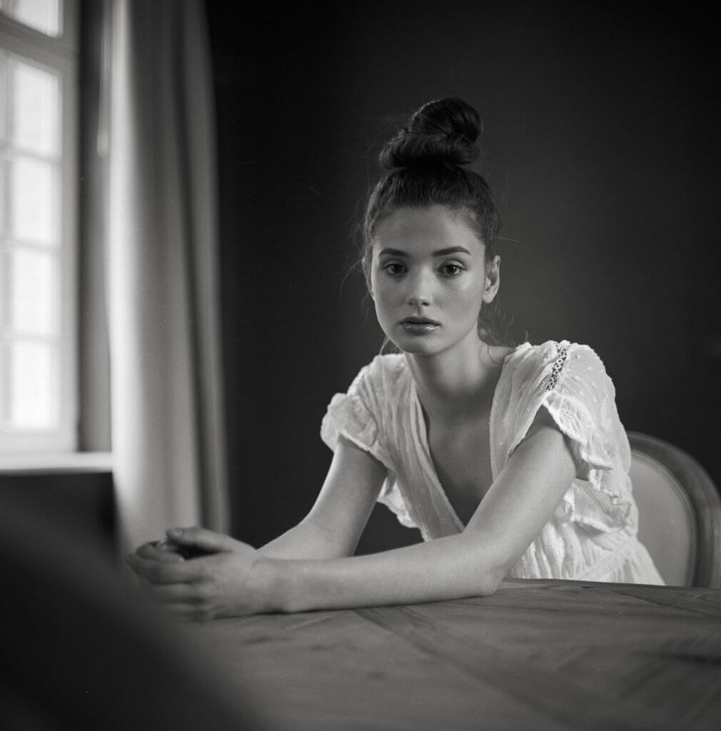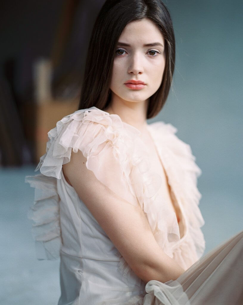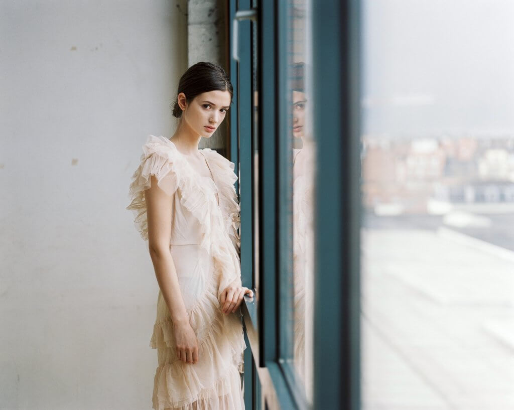 In order to make best use of the day we decided to book this artist workshop in Brussels-Molenbeek as location and to get a second model. We planned to shoot 2 hours with Manon and 2 hours with the other girl (that never showed up). When Manon walked in, she was much prettier than expected. When she put on the dress Stephanie took to the shoot, and tied her hair together I was sufficiently inspired to shoot – wow!!