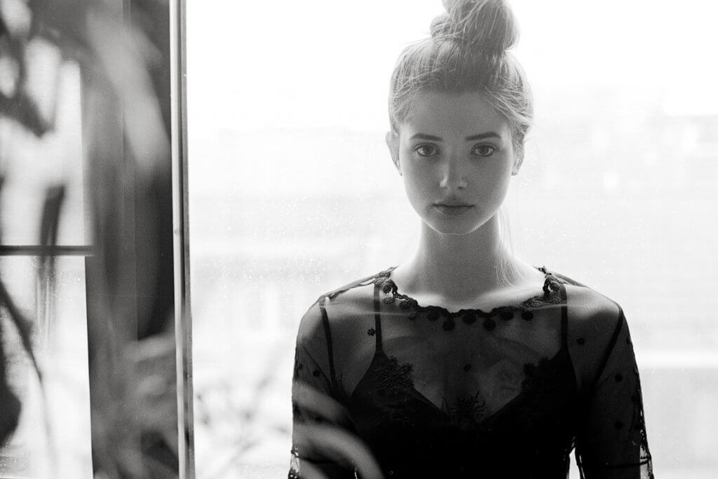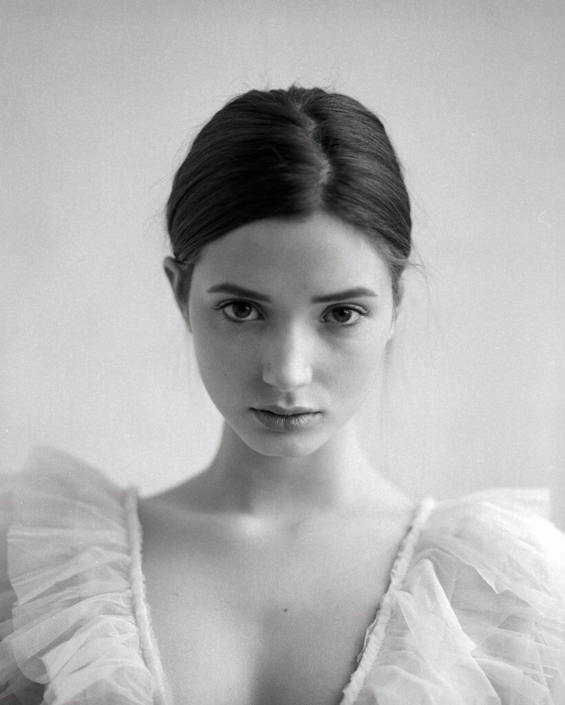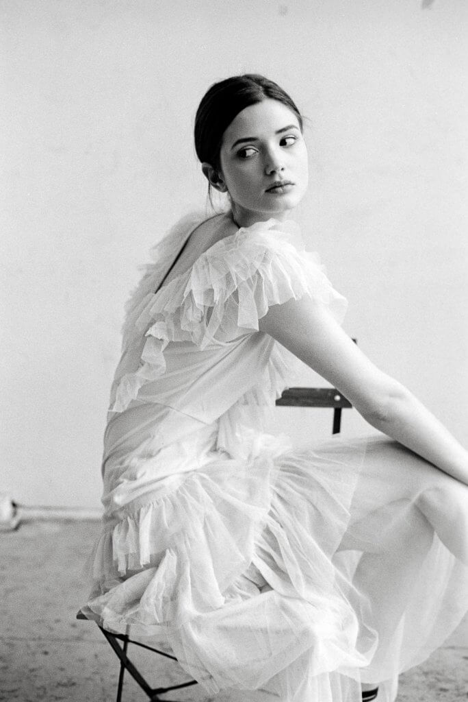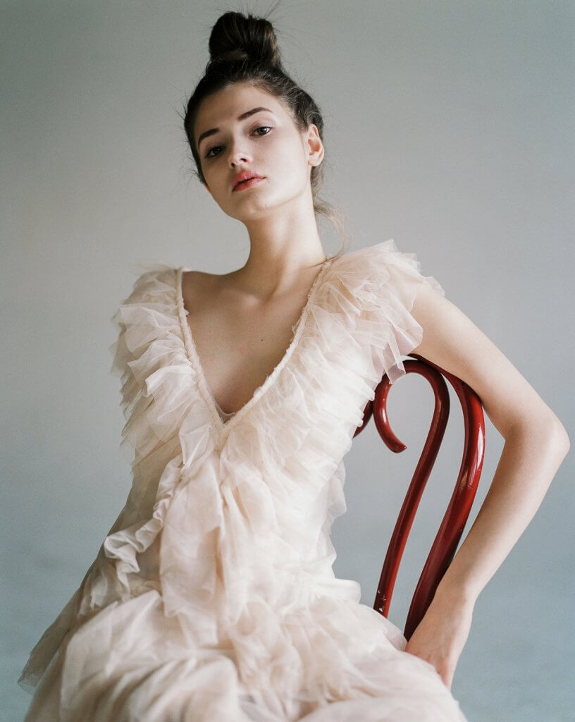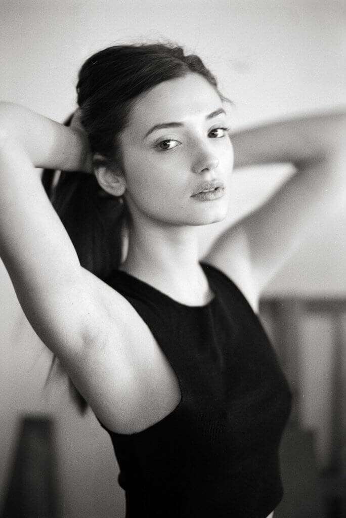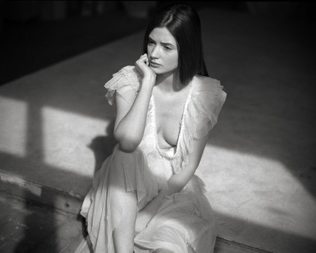 In order to make best use of the day we decided to book this artist workshop in Brussels-Molenbeek as location and to get a second model. We planned to shoot 2 hours with Manon and 2 hours with the other girl (that never showed up). When Manon walked in, she was much prettier than expected. When she put on the dress Stephanie took to the shoot, and tied her hair together I was sufficiently inspired to shoot – wow!!