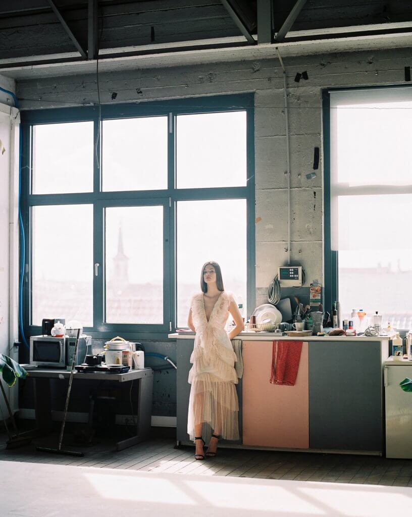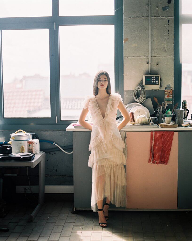 The location was a bit chaotic and cold, but had some beautiful light with sometimes the sun shining through the large windows. We tried different other outfits, but I was coming back to this one dress – it was just the perfect combination. The other model never showed up – and I am very happy she didn’t – so we could shoot the whole 4 hours with Manon. At the end you see a few pictures that we shot a week later – Stephanie was taking some fashion pictures with her and I stole a few shots.